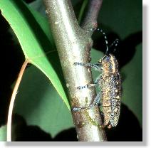 | Zum Schluss schiebt sie mit ihrem kurzen Legebohrer das Ei in das Loch unter die Rindenzunge ihres Hufeisens. |