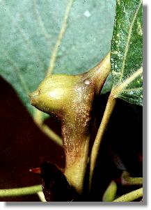 (Pemphigus bursarius) befällt ebenfalls Pappeltriebe und bildet hier